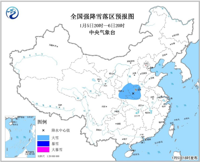 中央氣象臺(tái)1月5日18時(shí)再次發(fā)布暴雪藍(lán)色預(yù)警。