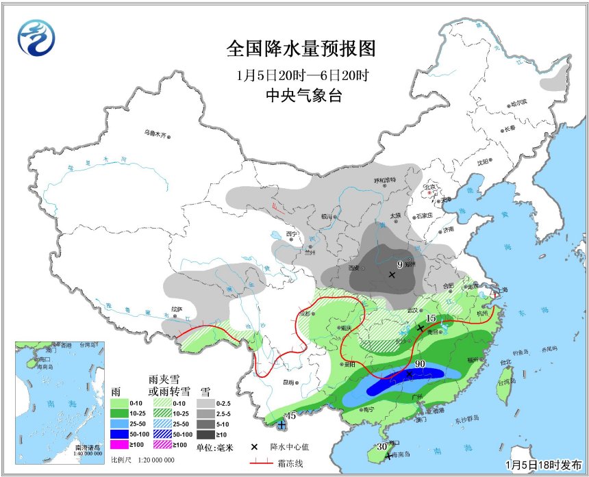 馬學(xué)款:此次大范圍雨雪天氣過程從5日夜間開始,預(yù)計(jì)8日減弱并逐漸結(jié)束。其中5日夜間至7日白天,貴州中北部、江南北部及以北大部地區(qū)自西向東先后有小到中雪或雨夾雪,其中,陜西中南部、山西南部、河南大部、湖北西部和北部、山東南部、蘇皖北部有大雪、局地暴雪(累計(jì)降雪量5~15毫米);新增積雪深度3~8厘米,局地可超10厘米。8日前后,東北地區(qū)中東部也將會(huì)有小到中雪。