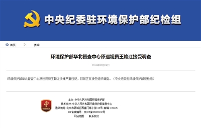 2016年8月24日,中央紀(jì)委駐環(huán)境保護部紀(jì)檢組發(fā)布消息,環(huán)境保護部華北督查中心原巡視員王贛江涉嫌嚴(yán)重違紀(jì),接受組織調(diào)查。