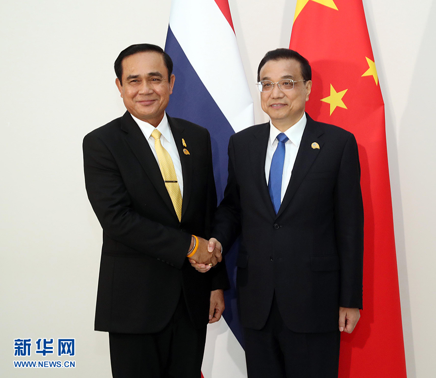 李克強(qiáng)表示,中泰一家親深入人心,兩國關(guān)系發(fā)展勢頭很好,各領(lǐng)域合作持續(xù)推進(jìn)。上個月,中泰鐵路項(xiàng)目一期工程動工,標(biāo)志著中泰合作邁上新臺階。希望雙方再接再厲,推動項(xiàng)目順利實(shí)施,并帶動中泰其他領(lǐng)域合作向前邁進(jìn)。中方愿加強(qiáng)“一帶一路”倡議同泰國“東部經(jīng)濟(jì)走廊”等發(fā)展戰(zhàn)略對接,提升中泰貿(mào)易便利化水平,加強(qiáng)經(jīng)貿(mào)、旅游、科技等領(lǐng)域合作,更好實(shí)現(xiàn)互利共贏。