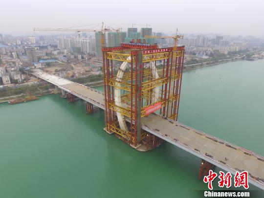 12日,目前世界上跨度最大的“反對(duì)稱(chēng)結(jié)構(gòu)斜拉橋”廣西柳州市白沙大橋主塔在106米高空合龍,該大橋建設(shè)正式進(jìn)入最后階段。