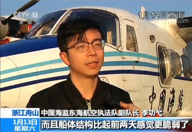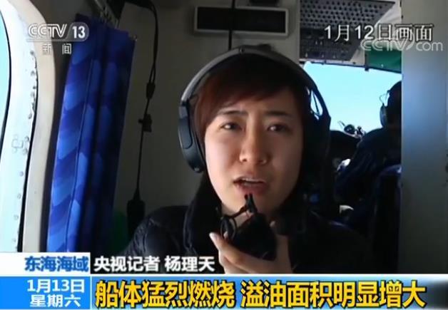 中國海監(jiān)東海航空執(zhí)法隊副隊長 李功弋:通過這幾天的航空觀察,感覺這艘船火勢沒有很明顯的變化,船體結(jié)構(gòu)越來越脆弱了,碰撞的缺口越來越大了,可能是11日的爆炸所致。