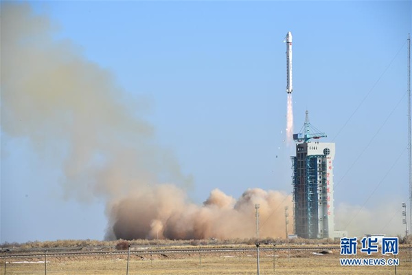 2018年1月13日15時(shí)10分,我國在酒泉衛(wèi)星發(fā)射中心用長征二號丁運(yùn)載火箭,成功將陸地勘查衛(wèi)星三號發(fā)射升空,衛(wèi)星進(jìn)入預(yù)定軌道。新華社發(fā)(汪江波 攝)