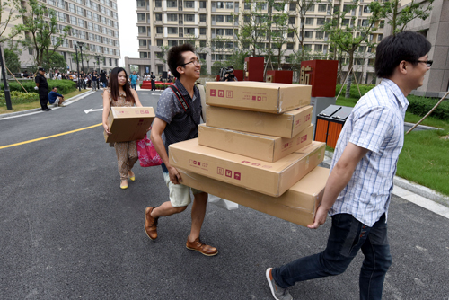 幾個新就業(yè)大學(xué)畢業(yè)生正在搬進(jìn)公租房 王定昶 攝