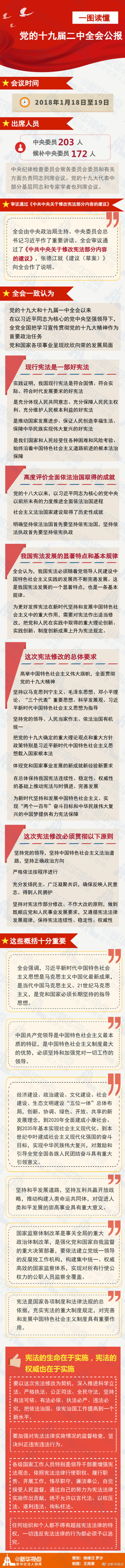 新華網(wǎng)北京1月20日電 黨的十九屆二中全會(huì)公報(bào)新鮮出爐,公報(bào)有哪些重要內(nèi)容?這次憲法修改的總體要求是什么?一圖讀懂?。〒?jù)新華視點(diǎn)微博)