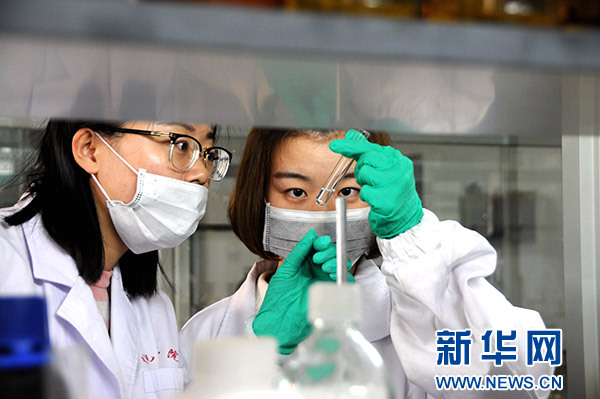 1月19日,蘭州交通大學(xué)天然藥物開發(fā)研究所教授沈彤(右)和他的學(xué)生一同進(jìn)行生物農(nóng)藥試驗(yàn)。新華社發(fā)(王銘禹 攝)