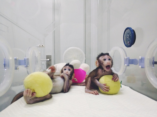 圖為體細胞克隆猴“中中”和“華華”? 中科院供圖