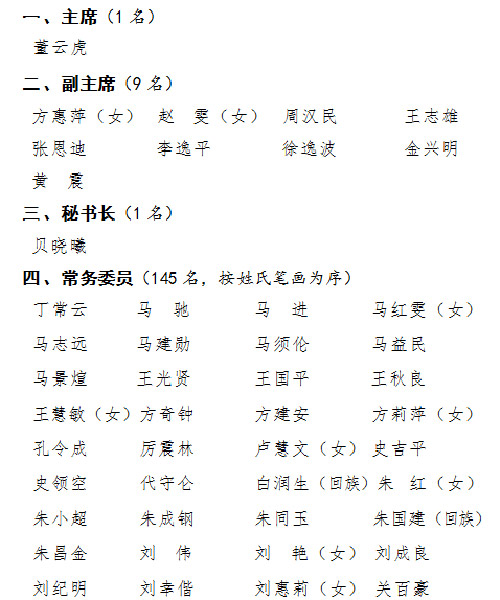 1月27日,市政協(xié)舉行全體會(huì)議,審議通過選舉辦法,總監(jiān)票人、監(jiān)票人名單,選舉產(chǎn)生十三屆市政協(xié)主席董云虎,副主席方惠萍、趙雯、周漢民、王志雄、張恩迪、李逸平、徐逸波、金興明、黃震,秘書長(zhǎng)貝曉曦,以及145名常務(wù)委員。