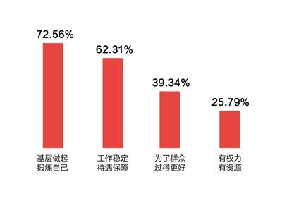 樣本情況:全國31個省區(qū)市的605名基層干部、4284名群眾參與了調(diào)查。受訪的基層干部中,從事基層工作不足5年的占27.77%、5到10年的42.64%、11到20年的20.83%、20年以上的8.76%。