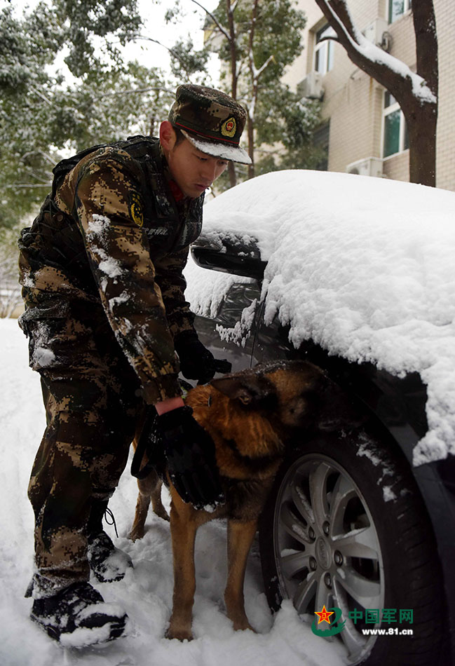 1月27日,武警安徽總隊(duì)機(jī)動(dòng)支隊(duì)警犬班班長(zhǎng)王營(yíng)廣帶領(lǐng)警犬“魯克”進(jìn)行車(chē)輛搜爆訓(xùn)練。