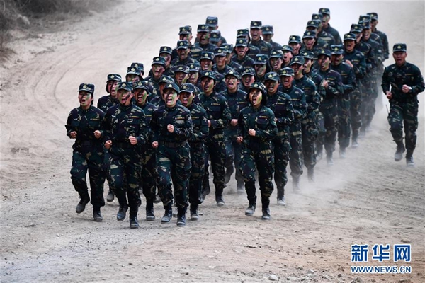 第75集團軍某特戰(zhàn)旅指揮通信連進行越野訓(xùn)練(2月1日攝)。新華社記者 張永進 攝