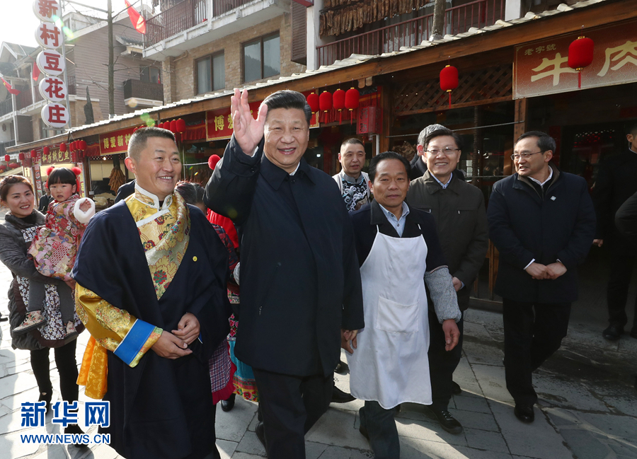 春節(jié)在即,村里照全家福、寫春聯(lián)福字、包湯圓等新春民俗活動(dòng)豐富多彩。習(xí)近平每到一處,都駐足同群眾交流,他說(shuō):“我是人民的勤務(wù)員,讓人民過(guò)上好日子是我們共產(chǎn)黨人的初心、宗旨。”臨行前,村民們歡呼著簇?fù)砩蟻?lái)向總書記拜年,習(xí)近平熱情同村民們打招呼,祝鄉(xiāng)親們安逸舒適、新春快樂(lè)、闔家幸福。
