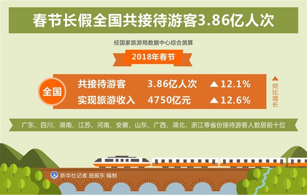 圖表:春節(jié)長(zhǎng)假全國(guó)共接待游客3.86億人次 新華社記者 曲振東 編制