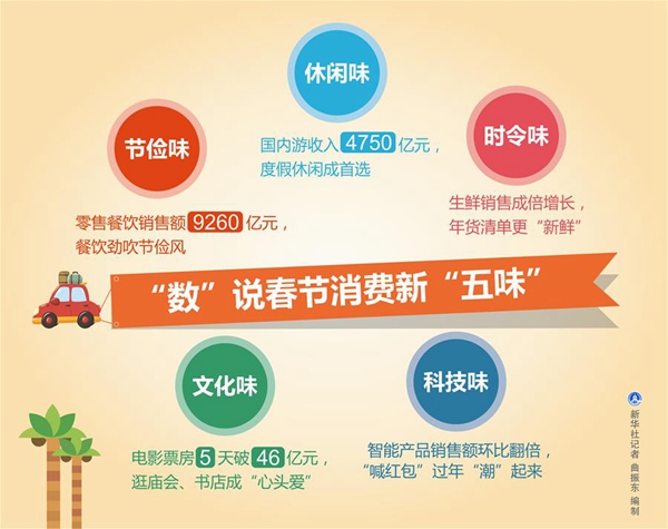圖表:“數(shù)”說(shuō)春節(jié)消費(fèi)新“五味” 新華社記者 曲振東 編制