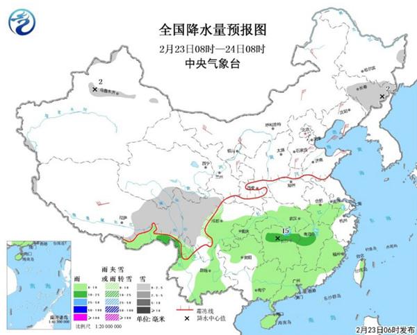 中央氣象臺預計,今天8時至明天8時,吉林中東部、西藏東部、青海南部、川西高原等地有小雪或雨夾雪;四川盆地南部、貴州北部、云南北部和東部、江漢大部、江南大部、華南大部等地有小雨,局地中雨。