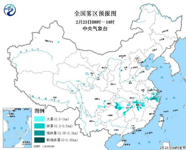 中央氣象臺今天6時繼續(xù)發(fā)布大霧黃色預警,預計今天早晨至上午,安徽南部、江蘇南部、浙江北部、江西北部、湖北東南部、湖南西北部和中部、四川盆地南部等地有大霧天氣,其中浙江北部、江西北部、湖南西北部和中部等地的部分地區(qū)有濃霧,局地能見度低于200米。