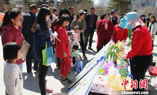 資料圖:圖為西寧市兒童福利院工作人員義賣(mài)兒童手工作品。薛默 攝