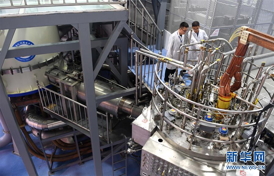 工作人員在中科院合肥物質(zhì)科學(xué)研究院查看混合磁體裝置(2017年9月27日攝)。 新華社記者 劉軍喜 攝