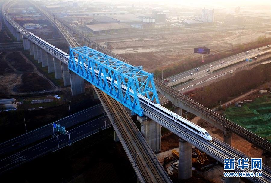 2017年12月6日,西安至成都高速鐵路全線開通運(yùn)營(yíng),由西安北站駛出的列車經(jīng)過西成高鐵跨西寶高鐵特大橋。 新華社記者 劉瀟 攝