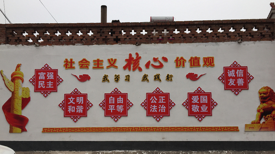圖為南石村委辦公樓對(duì)面引人注目的標(biāo)語(yǔ)。新華網(wǎng)記者 陳麗 攝