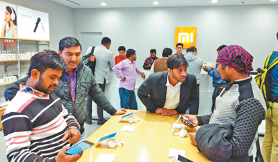 印度南德里第一家小米手機(jī)專賣店內(nèi)消費者眾多。記者 苑基榮 攝