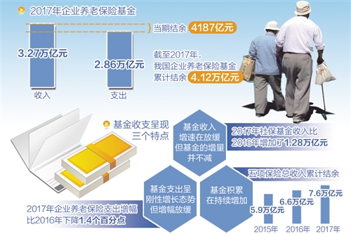 如何看待當(dāng)前我國(guó)社?;鸬氖罩毫??游鈞表示,隨著我國(guó)進(jìn)入經(jīng)濟(jì)新常態(tài),特別是人口老齡化的加速推進(jìn),我國(guó)的社會(huì)保險(xiǎn),特別是養(yǎng)老保險(xiǎn)也進(jìn)入了一個(gè)新的發(fā)展時(shí)期,基金收支呈現(xiàn)新特點(diǎn):一方面,雖然基金收入增速在放緩,但是基金增量不減;另一方面,雖然基金支出呈剛性增長(zhǎng)態(tài)勢(shì),但是增幅在放緩;此外,基金積累也在持續(xù)增加。數(shù)據(jù)顯示,2015年,我國(guó)五項(xiàng)社?;鹄塾?jì)結(jié)余為5.9萬(wàn)億元,2016年達(dá)到6.6萬(wàn)億元,2017年達(dá)到7.6萬(wàn)億元。