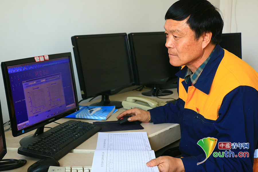 邰芳鵬年近60歲,雖然體力上不如年輕人,但他從來不服輸。如今,南疆鐵路已升級(jí)為計(jì)算機(jī)聯(lián)鎖設(shè)備,邰芳鵬也緊跟時(shí)代步伐,學(xué)習(xí)計(jì)算機(jī)操作?,F(xiàn)在他對(duì)計(jì)算機(jī)監(jiān)測設(shè)備也能進(jìn)行熟練操作和分析。中國青年網(wǎng)通訊員姚旭東 攝