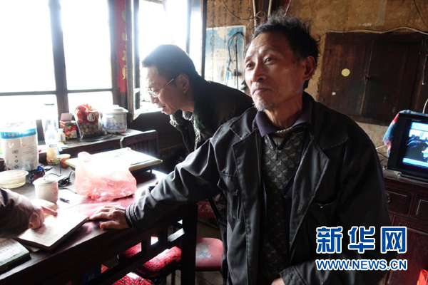 方金森展示自己??吹臅凸P記本。新華網(wǎng) 卓越 攝