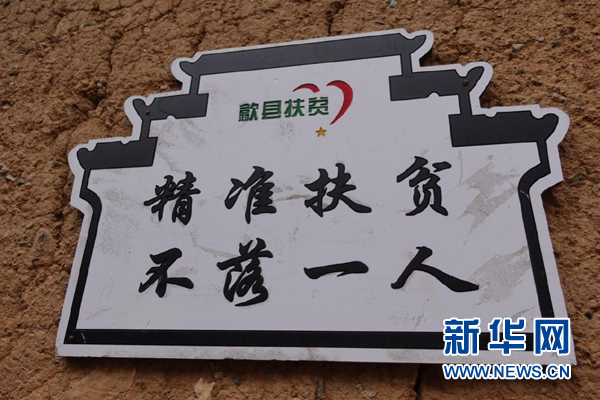 貼在村道旁的“精準(zhǔn)扶貧”標(biāo)語。新華網(wǎng) 卓越 攝