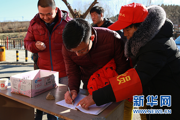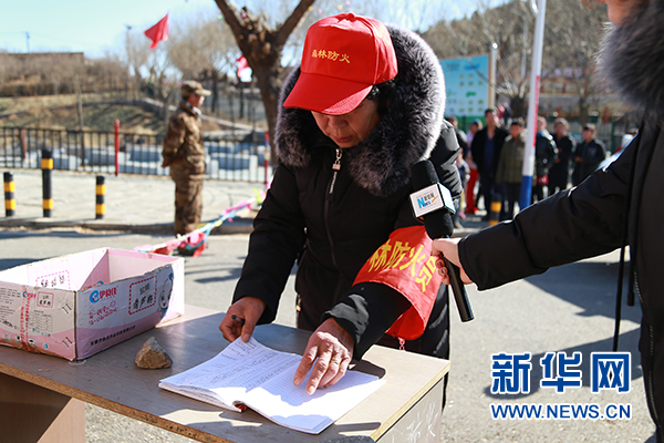 上山游客做登記并將打火機(jī)暫存給護(hù)林員。新華網(wǎng) 周靖杰 攝