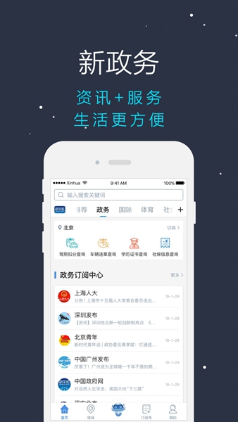 新華社已與3000多家地方政府機構(gòu)簽訂內(nèi)容合作協(xié)議,來自全國的政務(wù)資訊與新華社客戶端實現(xiàn)互聯(lián)互通、同步發(fā)布,用戶可以自主訂閱各地各類政務(wù)專欄。在新聞服務(wù)的基礎(chǔ)上,新版開始向功能性政務(wù)服務(wù)延伸,為全國用戶提供包括駕駛扣分、車輛違章、學(xué)歷證書和社保信息等多種查詢服務(wù)。
