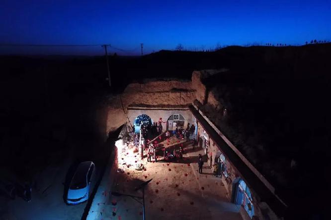 2月22日,在山西省永和縣奇奇里村,村民們在為馮文忠的婚禮準(zhǔn)備菜品(無人機(jī)拍攝)新華社記者 詹彥 攝