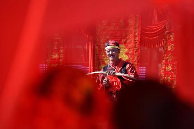 2月23日,在山西省永和縣奇奇里村,新郎馮文忠在婚禮儀式上射箭。 新華社記者 詹彥 攝