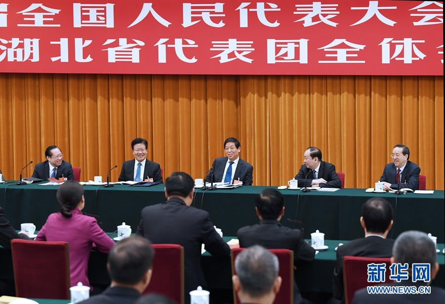 3月9日,中共中央政治局常委栗戰(zhàn)書參加十三屆全國人大一次會議湖北代表團的審議。 新華社記者 饒愛民 攝