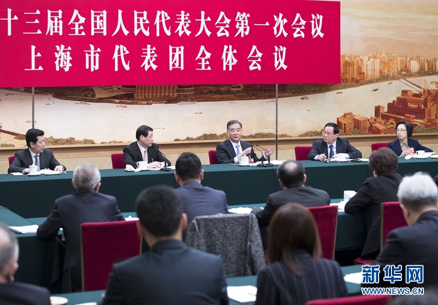 3月9日,中共中央政治局常委、國務院副總理汪洋參加十三屆全國人大一次會議上海代表團的審議。 新華社記者 王曄 攝