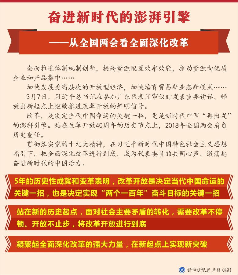 改革,是決定當代中國命運的關鍵一招,更是新時代中國“再出發(fā)”的澎湃引擎。站在改革開放40周年的歷史節(jié)點上,2018年全國兩會肩負歷史重任。