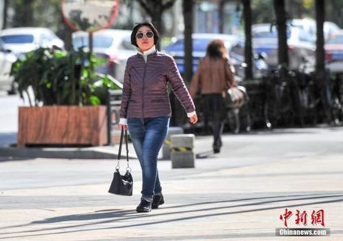 資料圖:民眾穿薄羽絨服出行。中新社記者 于海洋 攝