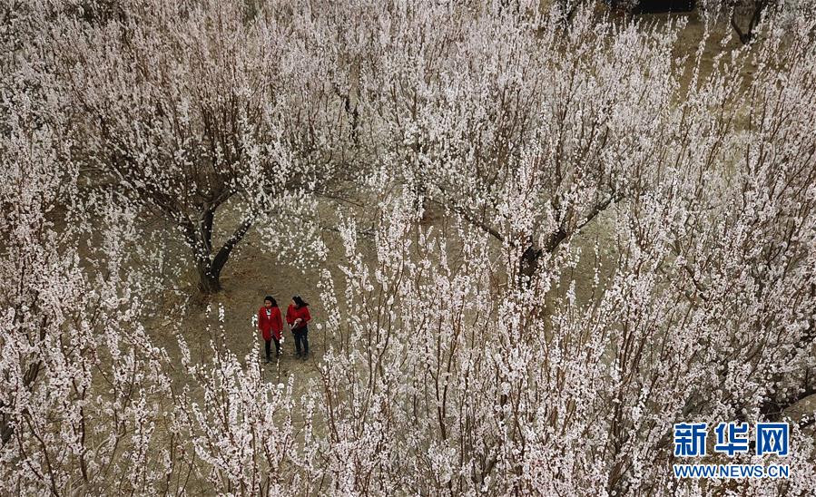 3月28日,游客在敦煌鳴沙山下的李廣杏園內(nèi)賞花。近日,甘肅省敦煌市鳴沙山下8000多畝李廣杏花競相開放,吸引了眾多游客和市民踏青賞花。 新華社記者陳斌攝