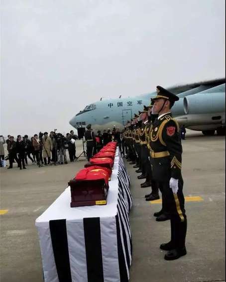 3月28日,第五批在韓中國(guó)人民志愿軍烈士遺骸由我空軍專(zhuān)機(jī)護(hù)送回國(guó),20位志愿軍烈士英靈回到祖國(guó)和人民懷抱。