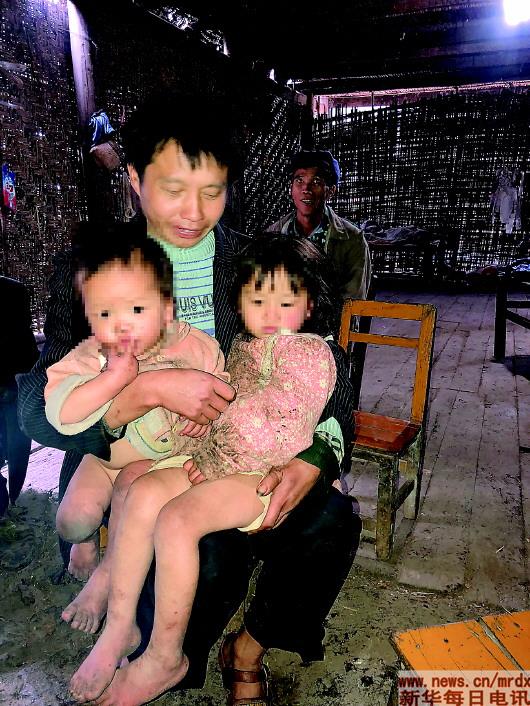 他看起來并不悲觀,他將2歲的兒子和6歲的女兒抱在懷中,孩子光著的腿已凍得通紅。冬日寒風(fēng)凜冽,我們擔(dān)心孩子會(huì)凍著,他卻擺著手說:不冷、不冷。