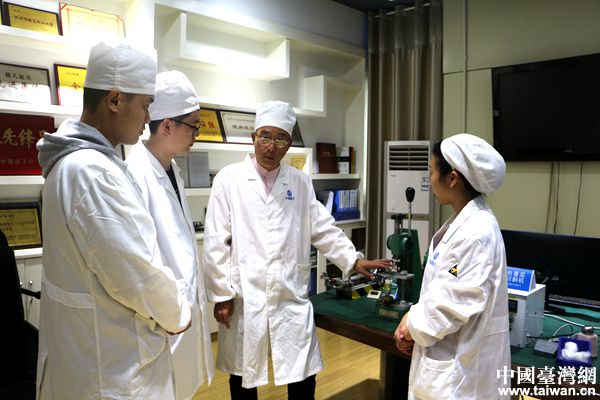 “共祝愿祖國(guó)好”六字醒目的掛在工作車間墻壁上,這是他們長(zhǎng)期以來(lái)堅(jiān)守的信念。(中國(guó)臺(tái)灣網(wǎng) 盧佳靜 攝)