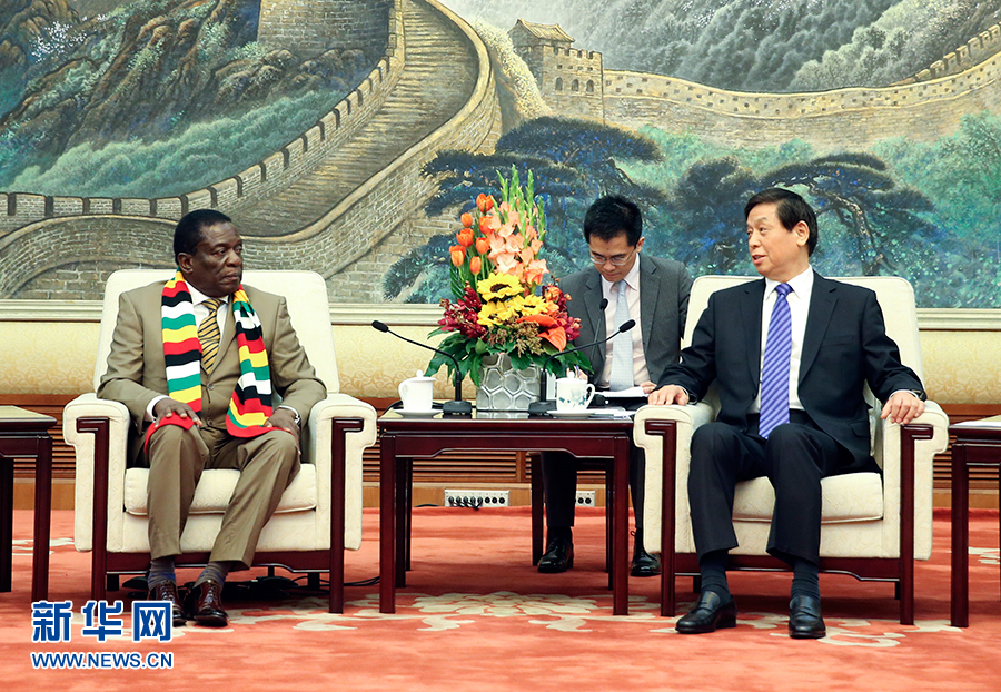 栗戰(zhàn)書會見津巴布韋總統(tǒng)姆南加古瓦