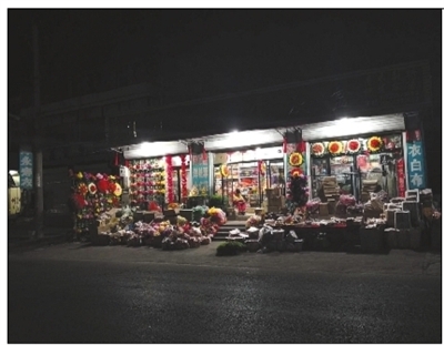 3月29日,村內(nèi)一家營業(yè)到十一點多的殯葬品零售批發(fā)店。