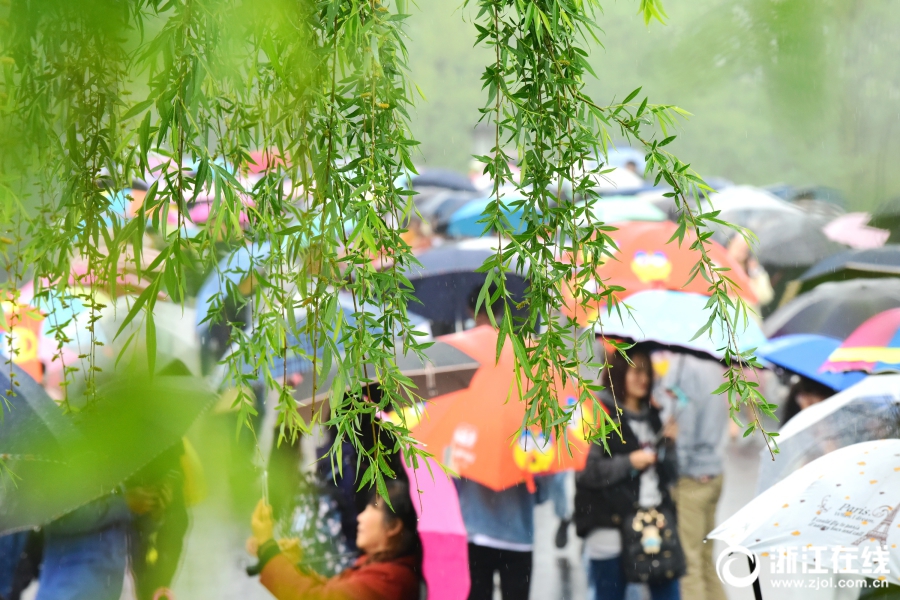 4月5日,清明小長假首日,杭州細雨綿綿,西湖景區(qū)游客絡(luò)繹不絕。杭城雖降雨降溫,但西湖景區(qū)前來賞花踏青的游客如潮,斷橋似人橋。(浙江在線拍友 里爾 柱子 攝)