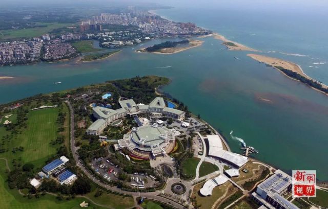 藍(lán)天碧海,文昌航天發(fā)射場箭指太空,三亞國際郵輪港碼頭萬噸郵輪矗立,環(huán)島高鐵火車飛馳……