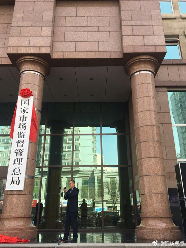 新華網(wǎng)北京4月10日電 ?新組建的國家市場監(jiān)督管理總局10日正式掛牌。張茅任局長、畢井泉任黨組書記。(記者 趙文君) ????(據(jù)新華社“新華視點”微博)?