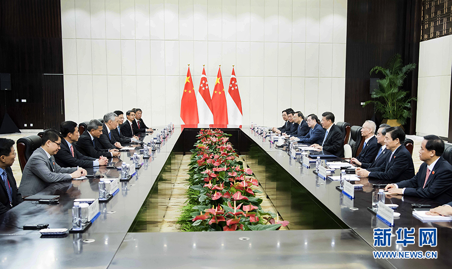 習近平指出,中新關系發(fā)展同中國改革開放息息相關。當前,中國特色社會主義進入新時代,新加坡正在實施“未來經濟發(fā)展戰(zhàn)略”。雙方要結合新形勢新特點,對雙邊關系和務實合作作出新的戰(zhàn)略謀劃和頂層設計。雙方要推進政府間大項目合作。要加強“一帶一路”框架內合作,繼續(xù)打造好兩國共建的“南向通道”,將“一帶”和“一路”更好連接起來。中方愿同包括新方在內東盟國家加強溝通協調,實現“一帶一路”倡議同東盟發(fā)展規(guī)劃更好對接,構建更為緊密的中國-東盟命運共同體,希望新加坡發(fā)揮積極建設性作用。
