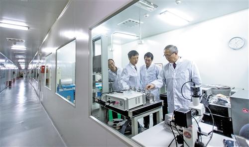 中國(guó)科學(xué)院院士羅俊教授(右)在華中科技大學(xué)引力實(shí)驗(yàn)中心與科研人員交流實(shí)驗(yàn)情況。新華社記者 熊琦攝