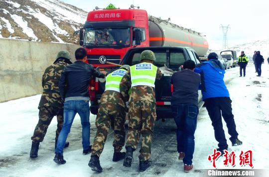 4月15日,受強冷空氣影響,西藏藏東南區(qū)域普降暴雪,致使川藏線昌都市左貢縣境內(nèi)東達山段交通中斷,造成600余臺車輛滯留。