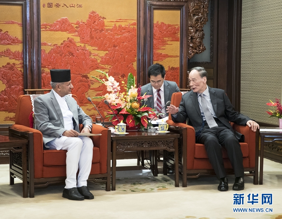 王岐山表示,中尼交往源遠(yuǎn)流長,是經(jīng)過歷史檢驗的好鄰居、好朋友。在兩國領(lǐng)導(dǎo)人共同引領(lǐng)下,中尼關(guān)系持續(xù)健康發(fā)展,各領(lǐng)域合作穩(wěn)步推進(jìn)。中國改革開放和社會主義現(xiàn)代化建設(shè)中,一條很重要的經(jīng)驗是處理好穩(wěn)定與發(fā)展的關(guān)系,穩(wěn)定是發(fā)展的前提,發(fā)展是穩(wěn)定的基礎(chǔ)。中方高興看到尼泊爾完成政治轉(zhuǎn)型,將國家建設(shè)重心轉(zhuǎn)移到發(fā)展經(jīng)濟(jì)上來,支持尼保持團(tuán)結(jié)穩(wěn)定,實現(xiàn)發(fā)展目標(biāo)。希望雙方共同落實好已有共識和協(xié)議,以“一帶一路”建設(shè)為契機(jī)拓展全方位合作,推動兩國關(guān)系發(fā)展到新高度。